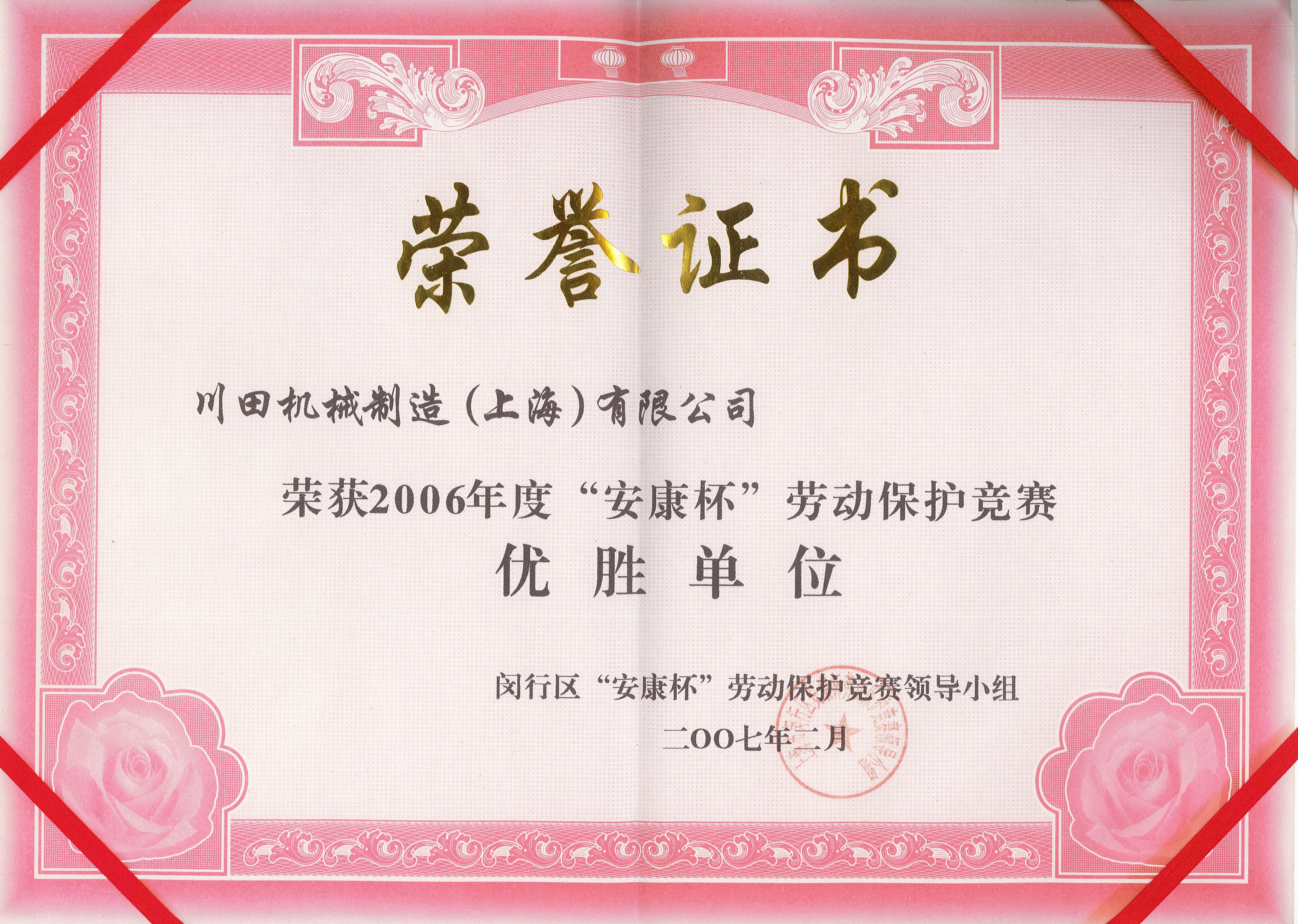 2006 閔行區(qū)安康杯勞動(dòng)保護(hù)競(jìng)賽優(yōu)勝單位