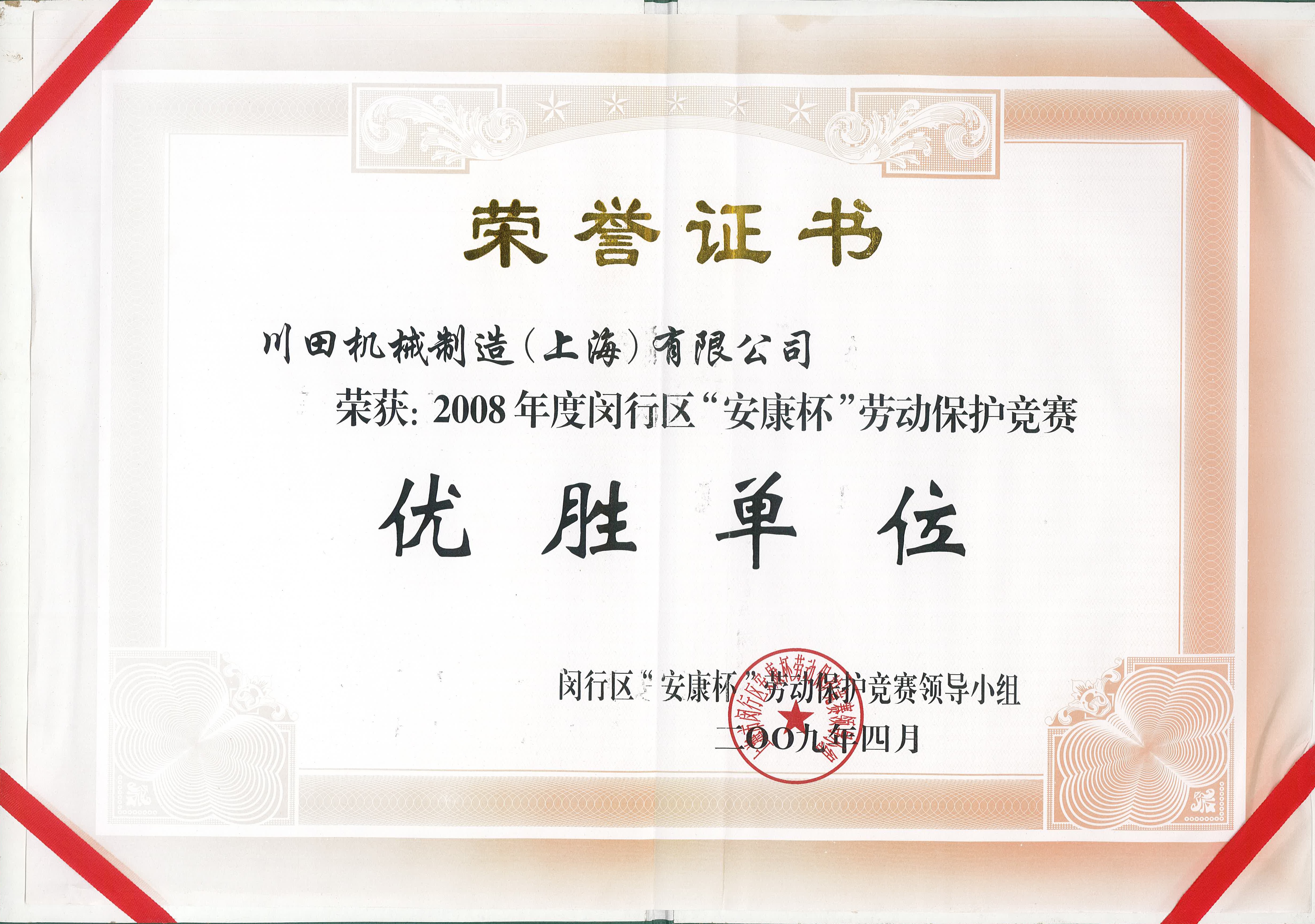 2008 閔行區(qū)安康杯勞動(dòng)保護(hù)競(jìng)賽優(yōu)勝單位