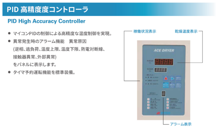 簡易操作機能撘載の成形工場に最適な亁燥機